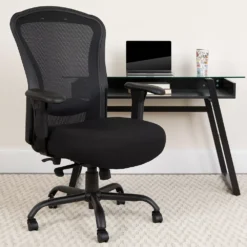 Emma And Oliver 24/7 400 Lb. Big & Tall Black Mesh Synchro-Tilt Swivel Ergonomic Office Chair