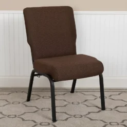 Emma And Oliver 4 Pack Trapezoid Banquet Stack Chair, 2.5″ Seat – Gray Fabric/Silver Vein Frame