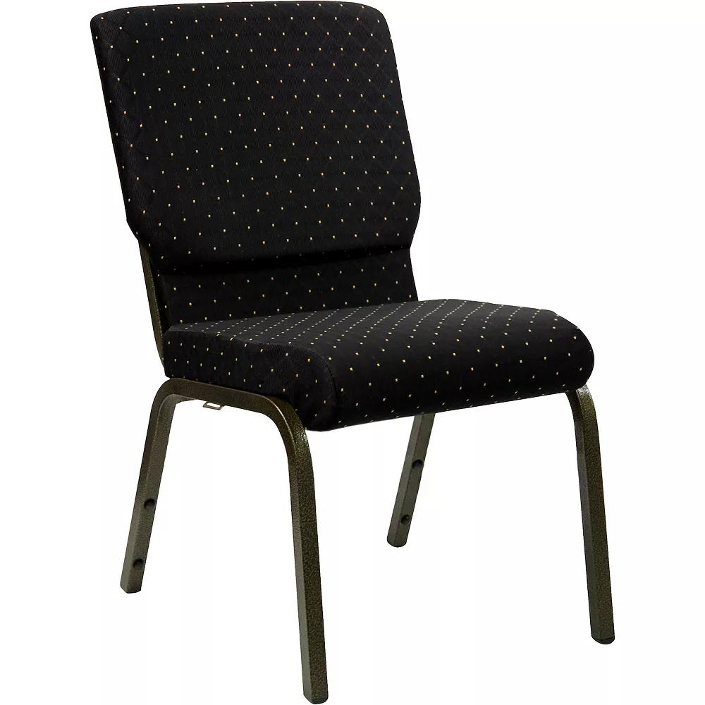 This beautiful church chair will keep your guests supremely comfortable whether you’re hosting an all-day seminar, serving a 10 course meal or delivering your most inspirational sermon. This chair offers an advantage over pew seating with the flexibility of creating different seating configurations. The chair’s cushioned back and 4 thick seat are generously padded and covered in durable fabric upholstery. The seat has a waterfall edge that reduces pressure on your attendees’ legs. A convenient book pouch on the back of the chair keeps seminar materials, bibles or hymn books readily available. Built-in ganging brackets connect your chairs and maintain nice, straight rows. Its sturdy 16 gauge steel, gold vein frame, with gracefully angled legs, has been tested to hold up to 800 pounds and plastic rocker glides protect your floor by sliding smoothly when you need to move the chair. This Church Chair is an excellent option for hotel lobbies, banquet halls, conference facilities and worship centers.
