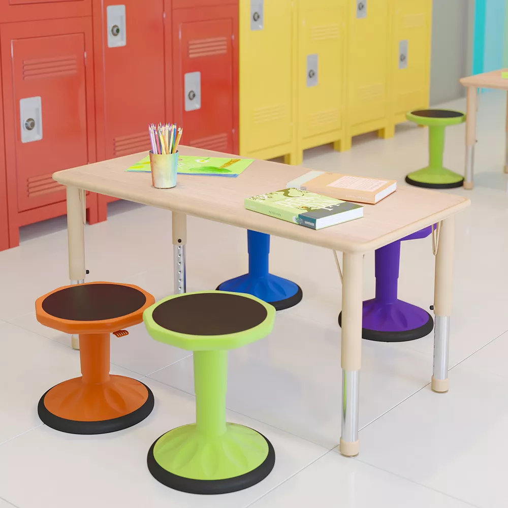 Give your classroom a boost with multi-purpose kids tables for learning, crafting and snack time. Perfect as a classroom table, the safety rounded corners reduce injury around rambunctious toddlers. The laminate top and plastic edge material blend seamlessly. The neutral tone focuses children on learning assignments. Adjustable height legs give you the flexibility to raise or lower to accommodate kids up to the age of 7. Children appreciate having their own area within the common areas of the home. This activity table serves as a play table or kids dining table. Host cheerful birthday and dinner parties around this rectangular plastic table that accommodates up to 6 with plenty of room between each child. Don’t let spills ruin the fun, the low maintenance top is easy to clean. Boasting a neutral finish this play table is suitable for girls and boys. This plastic table is heavy-duty for use in preschools, daycares and playrooms. Pair with our natural plastic stackable school chairs for a complete table and chair ensemble.