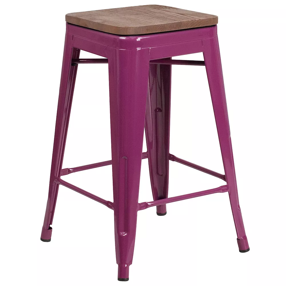 Save on space with this Backless Metal Counter Stool with wood seat. The clean lines and simple design of this square, industrial style stool will look great in your kitchen or inside your bar/restaurant. Designed to stack, this stool is an ideal choice in the restaurant industry. A cross brace underneath the seat adds extra stability and features plastic caps that prevent the finish from scratching when stacked. The lower support brace doubles as a footrest, and floor glides protect your floor by sliding smoothly when moving it. Designed for both commercial and residential use, this counter stool will provide refreshing rustic feel with its metal and wood features.