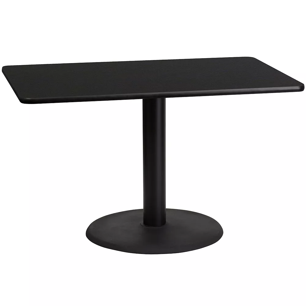 Complete your restaurant, break room or cafeteria with this table top and base configuration. This set is designed for commercial use to withstand the daily rigors in the hospitality industry. This set will also make a great option for your home as a dining table or in the rec room. The reversible black or mahogany top allows you to choose your color of choice and then affix to the base. Surface is heat, scratch and moisture resistant. Use a mild detergent and water, dry clean to keep your tables spotless. Whether you are just starting your business or upgrading your furniture this table set will complete the look.