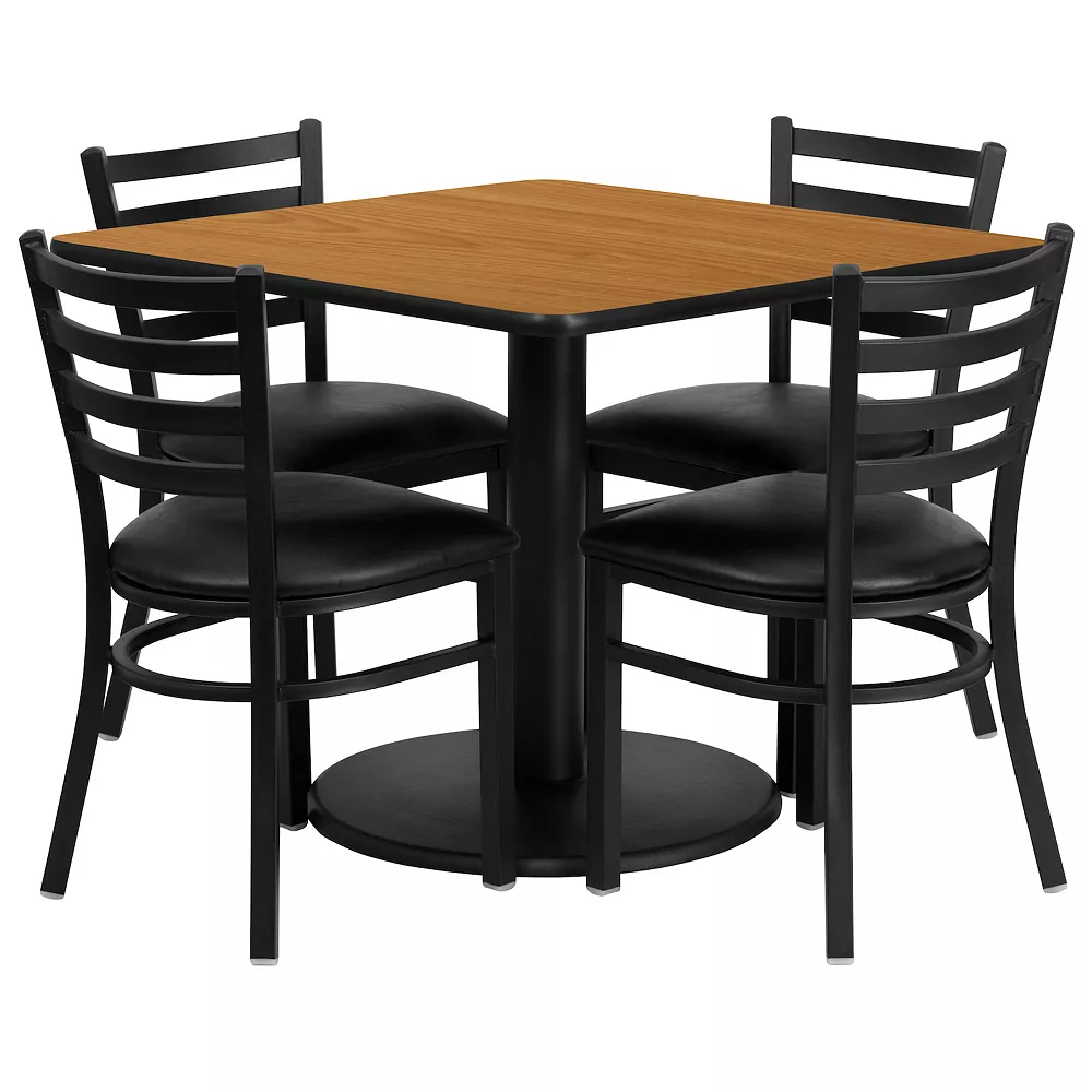 - Set Includes 4 Chairs, Square Table Top and Round Base