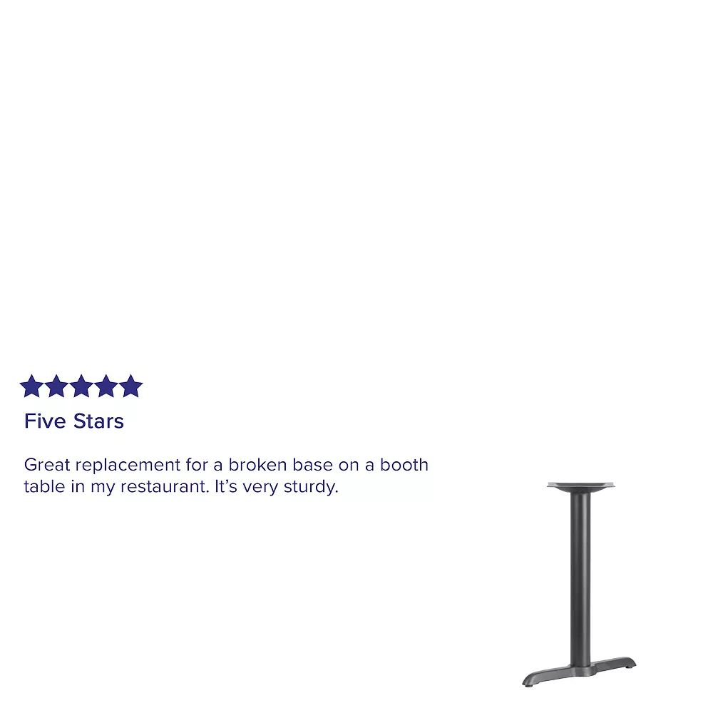 Get the look you want in your restaurant, break room or cafeteria with table bases and coordinating table tops. This table height base features cast iron construction designed for commercial use so you can be assured it will withstand the daily rigors in the hospitality industry. The black powder coated finish of the base easily matches any bar or restaurant decor. Whether you are just starting your business or upgrading your furniture, invest wisely with this table base designed to withstand years of heavy use.