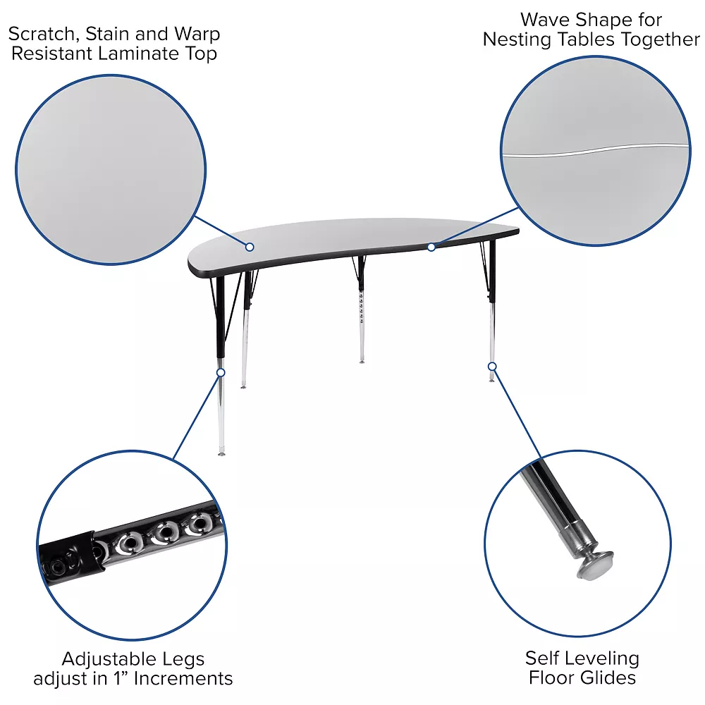 - Half Circle Flexible Collaborative Wave Activity Table with long-lasting Scratch and Stain Resistant Top