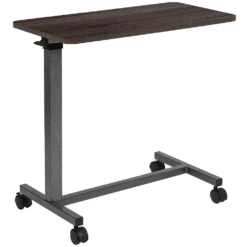 Carry out normal activities while propped up in a hospital bed due to illness or accident, keeping yourself busy with the aide of an over bed table. Bedridden patients can eat their meals, play card games with visitors, prop their phone or tablet during video chats or work on their laptop atop this mobile table. Overbed tables are a necessary piece of furniture for any hospital or outpatient facilities’ patient room, medical tables allow patients to become more independent. The mobile over bed table solves the needs of newly independent patients who are taking small steps to recovery to patients who are thriving preparing for outpatient treatment or are going home. This hospital bed table is user-friendly with a pneumatic lever to adjust to the perfect working height. A stabilizing H-base prevent the table from tipping while the two-locking casters lock the table in place. Not just for bedridden patients, this over bed desk is perfect for the at-home worker who enjoys getting work done while lazing in bed. Purchase this mobile bedside table for home or medical use.