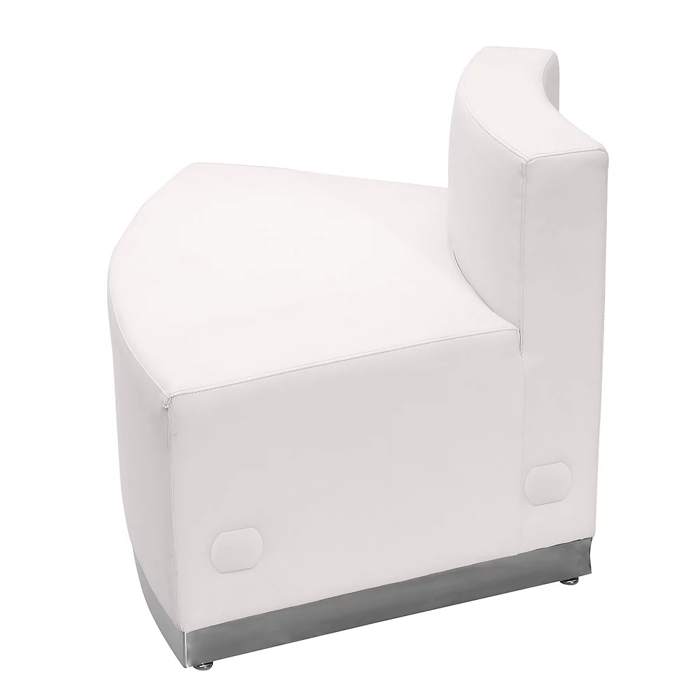 Moving your furniture around is a quick and easy way to change up the look and feel of your space so modular pieces like this black LeatherSoft upholstered convex chair are a must have. LeatherSoft is leather and polyurethane for added softness and durability. This modern chair gives an upscale, sophisticated look to any space and can be used in conjunction with other pieces or as a standalone. The armless design gives the illusion of space and creates an airy feel even in a small room. Supported by a brushed stainless steel base, this piece is durable and will withstand years of use. Adjustable floor glides ensure a level seating surface while the locking bolt connects this piece to chairs in this collection. As your business grows, you can add on more pieces and reconfigure your design. This innovative contemporary chair will bring comfort and trend-setting style to your waiting room, reception area or lounge.
