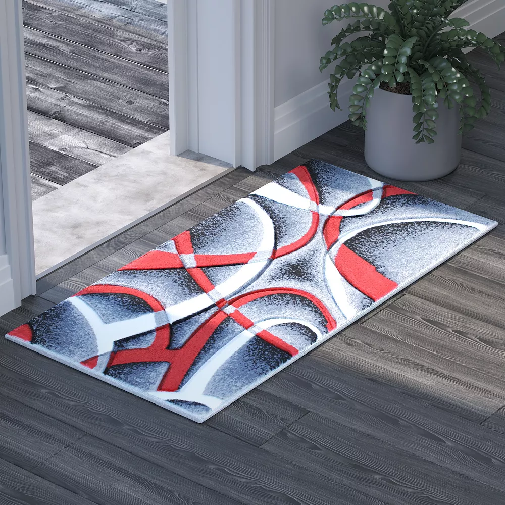 If you’re home is in need of a refresh, an accent rug is a great way to give new life to a space without spending a fortune. This rug features plush pile with a modern 3D sculpted intersecting arch pattern in red, gray, black and white to make a bold impact in any room. The olefin facing is water and stain resistant perfect for busy homes with pets and children. The colorfast, non-shedding fibers allow this rug to stay looking beautiful even through every day use. To clean, vacuum regularly to remove debris and blot any wet spills with a dry cloth. If needed, spot clean with a diluted mixture of clear, neutral detergent and water and a dry cloth. If the rug becomes heavily soiled, it can be steam cleaned on the lowest moisture setting. The natural jute backing makes this a suitable accent rug for multiple flooring types.