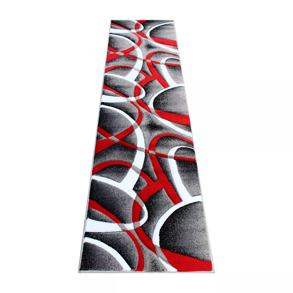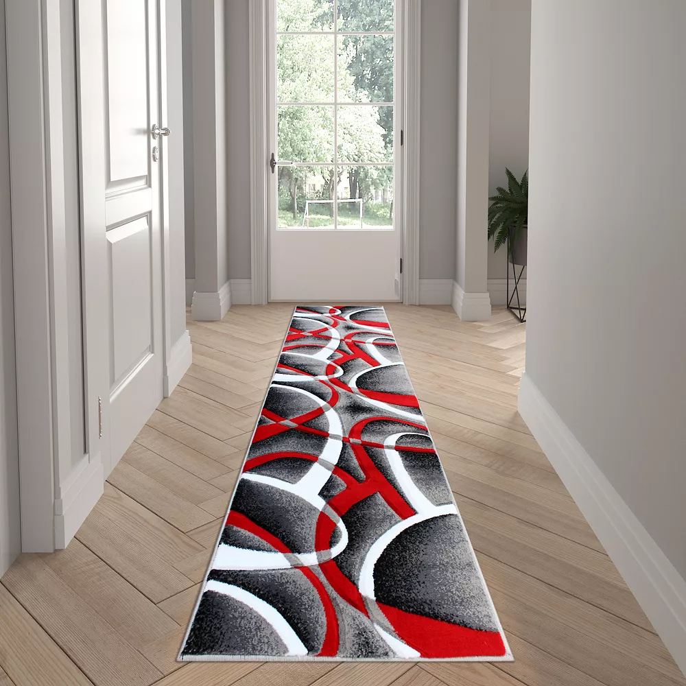 If you’re home is in need of a refresh, an accent rug is a great way to give new life to a space without spending a fortune. This rug features plush pile with a modern 3D sculpted intersecting arch pattern in red, gray, black and white to make a bold impact in any room. The olefin facing is water and stain resistant perfect for busy homes with pets and children. The colorfast, non-shedding fibers allow this rug to stay looking beautiful even through every day use. To clean, vacuum regularly to remove debris and blot any wet spills with a dry cloth. If needed, spot clean with a diluted mixture of clear, neutral detergent and water and a dry cloth. If the rug becomes heavily soiled, it can be steam cleaned on the lowest moisture setting. The natural jute backing makes this a suitable accent rug for multiple flooring types.