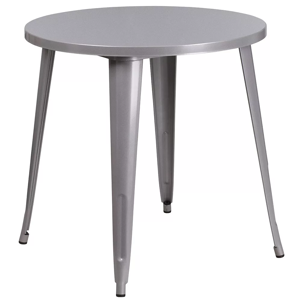 Complete your dining room, restaurant or patio with this chic table and chair set. This colorful set will add a retro-modern look to your home or eatery. Table features a smooth top and protective rubber floor glides. The stackable bistro chair features plastic caps that prevent the finish from scratching while being stacked. This 3 piece table set is designed for indoor and outdoor settings. For longevity, care should be taken to protect from long periods of wet weather. The possibilities are endless with the multitude of environments in which you can use this table, for both commercial and residential spaces.