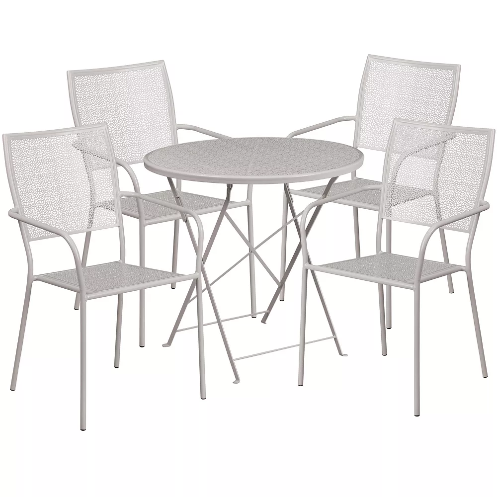 Brighten up your patio space with this beautiful patio table set. This colorful set will enhance your bistro, cafe, restaurant, hotel or home patio space. With the convenience of a folding table you can use it as a temporary placement or fold away for storage or cleaning the space. Quickly unfold the table by pulling the center brace. The patio chairs stack for storing. The frames are designed for all-weather use making it a great option for indoor and outdoor settings. For longevity, care should be taken to protect from long periods of wet weather. The possibilities are endless with the multitude of environments in which you can use this table, for both commercial and residential spaces.