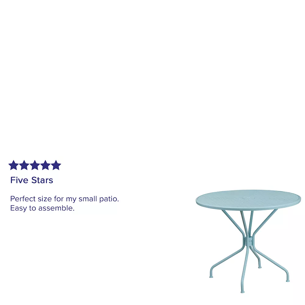 - Umbrella Hole: 1.5″ Dia.; 12.5″ from Floor