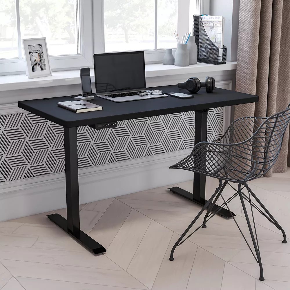 Improve productivity while also improving your mood with an adjustable computer standing desk. Whether in the office or working from home we spend a lot of time at our computer desk and a sit to stand desk offers a well-rounded design to get you through your work day. Adjustable desks support working at various seated heights with a regular desk chair or drafting chair. Transition from sitting to standing with the smooth motor mechanism. There’s no work involved with this electric height adjustable desk, simply push the up and down arrow buttons. Four preset memory buttons allow you to save your favorite settings whether you share the desk or are the sole user. The large work surface includes a grommet hole to neatly feed all cords through. Achieve a healthier work habit with an standing and sitting desk to promote healthy blood flow while burning additional calories. Get the added comfort while standing with our sit or stand anti-fatigue mat with floor protection.