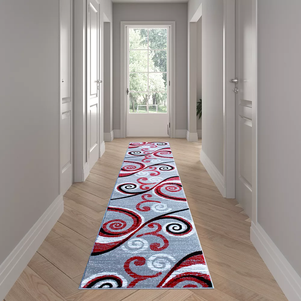 When your home is in need of a change, laying down an area rug can change the whole look of any room. This accent rug offers an ultra soft plush pile in gray with scraped look red, black and white swirls that give a hand painted, well loved feel. The olefin facing is naturally moisture and stain resistant, colorfast and non-shedding, perfect for a home with children and pets. The jute backing is suitable for multiple flooring types. With low maintenance care, you’ll be able to enjoy your rug without having to constantly worry about spills or messes. Simply vacuum regularly and spot clean when needed with a diluted mixture of clear, neutral detergent and water and a dry cloth. For heavier messes, the rug can be steam cleaned but should not be exposed to excessive moisture.