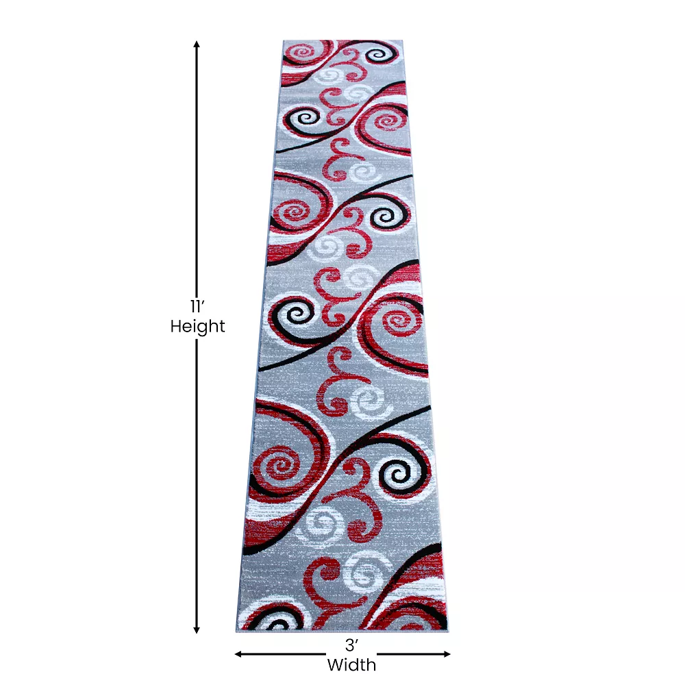 - Scraped Look Swirl Design in Red, Black, White and Gray