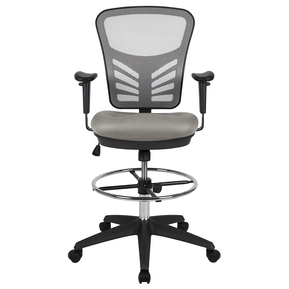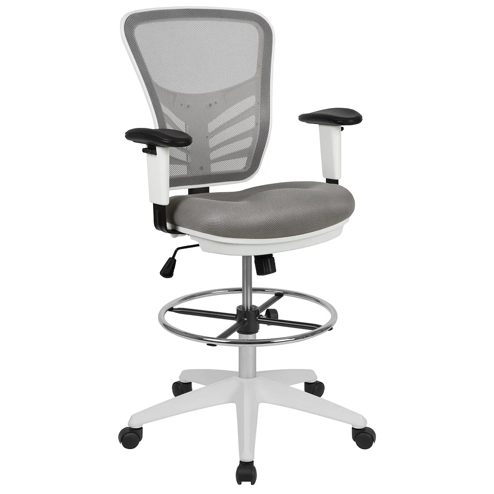 Discover a new way of office seating with an ergonomic drafting chair. With a rise in standing desks you need a compatible office chair to travel the distance with you. Enjoy the comforts of an ergonomic office chair in a taller frame to meet the needs of students and professionals working at above average desk heights. If you’re seeking an office chair to work at above standard heights in environments such as banks, architectural firms, art studios and other creative spaces a mesh back drafting stool is your perfect match. This draft chair features a ventilated mesh back with lumbar support to keep you cool along with a convenient lever to adjust the seat height and lock the seat in place to prevent you from rocking. Turning the tilt tension adjustment knob increases or decreases the amount of force needed to rock or recline. From standing desks to drafting desks this ergonomic drafting chair with contoured padded swivel seat will provide you with the comfort that you need to suit your work environment. Let this tall task chair deliver comfort while you scratch items off your to-do list.