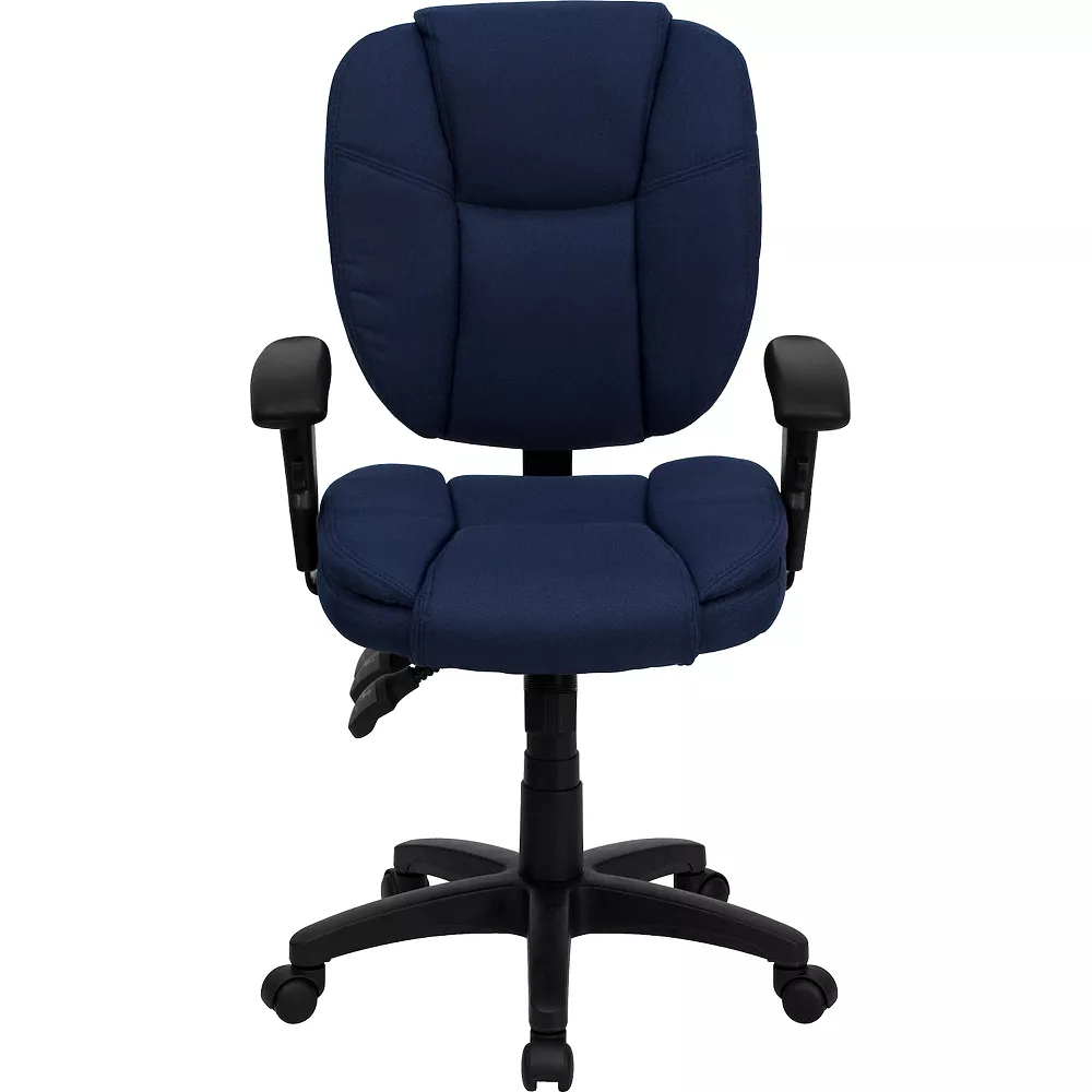 This multi-functional office chair will give you an edge on comfort with its design and adjusting capabilities. This office chair features fabric upholstery to comfortably get you through your work day or to keep you comfortable while browsing the internet. The contoured seat dissipates pressure points for greater comfort. A mid-back office chair offers support to the mid-to-upper back region. The locking back angle adjustment lever changes the angle of your torso to reduce disc pressure. The locking synchro tilt control allows the chair’s back and seat to recline at different rates, increasing the angle between your torso and thighs. The waterfall front seat edge removes pressure from the lower legs and improves circulation. Chair easily swivels 360 degrees to get the maximum use of your workspace without strain. The pneumatic adjustment lever will allow you to easily adjust the seat to your desired height. The adjustable armrests take the pressure off the shoulders and the neck, which minimizes the risk of pain.