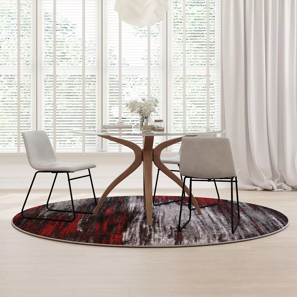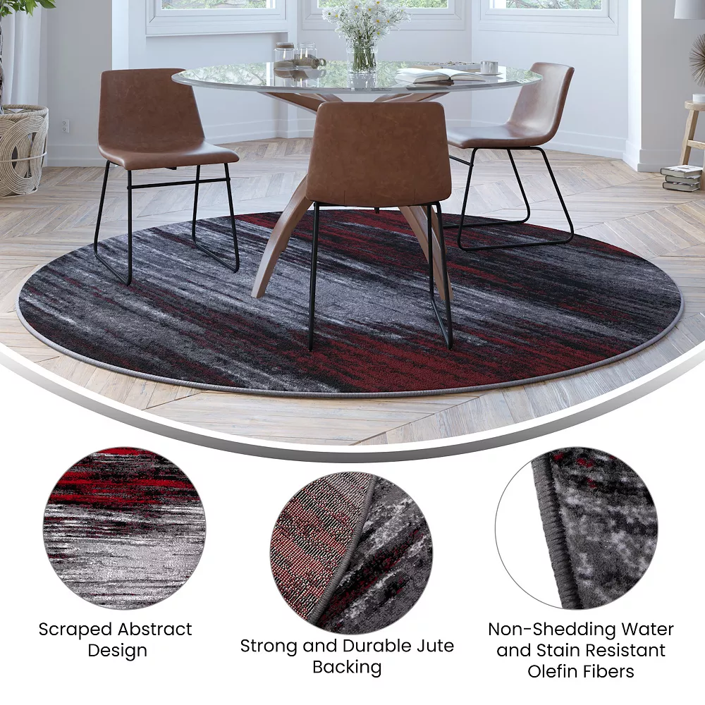 Glamour and sophistication abound in the scraped abstract pattern of this unique accent area rug. This versatile contemporary accent rug allows you to add warmth to hardwood floors, add color in multiple spaces, and protects flooring in high-traffic areas. This high pile area rug can be a warm place for your feet by the bed or an accent in your design scheme. Modern rugs provide several benefits in the home. Made from olefin fibers, this cutting edge area rug is stain and water resistant, colorfast, and provides a soft underfoot feel friendly to kids and pets. The jute backing gives this rug structural integrity and helps promote air flow. Vacuum regularly without the beater bar and spot clean with water and a mild detergent to maintain the look of your new rug.