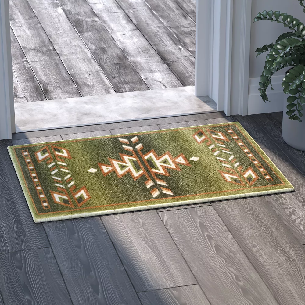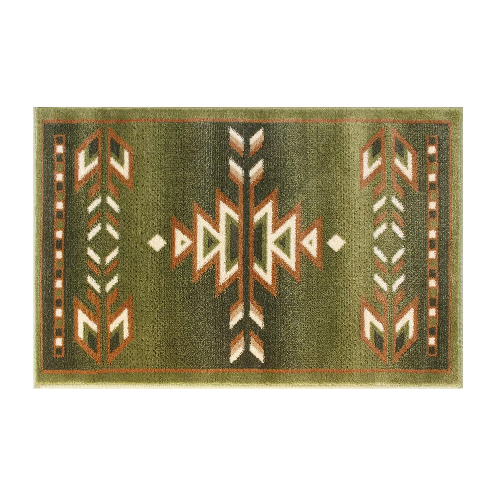 Bring rustic style to your home, cabin or RV with this olefin accent rug. Featuring a Southwestern arrow motif in beige, black and ivory set against a rich, green background, this rug brings the spirit of the open plains to your living space. Naturally moisture and stain resistant, this rug is ideal for hunting lodges, cabins and RV’s and with the easy clean up, you can spend more time outdoors enjoying what you love. Simply vacuum regularly and spot clean small spills or messes with a diluted mixture of clear, neutral detergent and water and a cloth. If you tracked the outdoors in, steam clean on the lowest moisture setting to refresh your rug and keep it looking newer longer. The natural jute backing is versatile to suit multiple flooring types for your convenience. A perfect blend of style and practicality, this rug was made for your lifestyle.