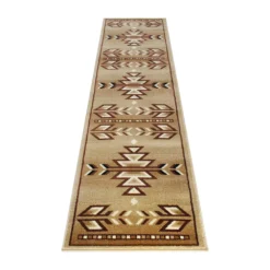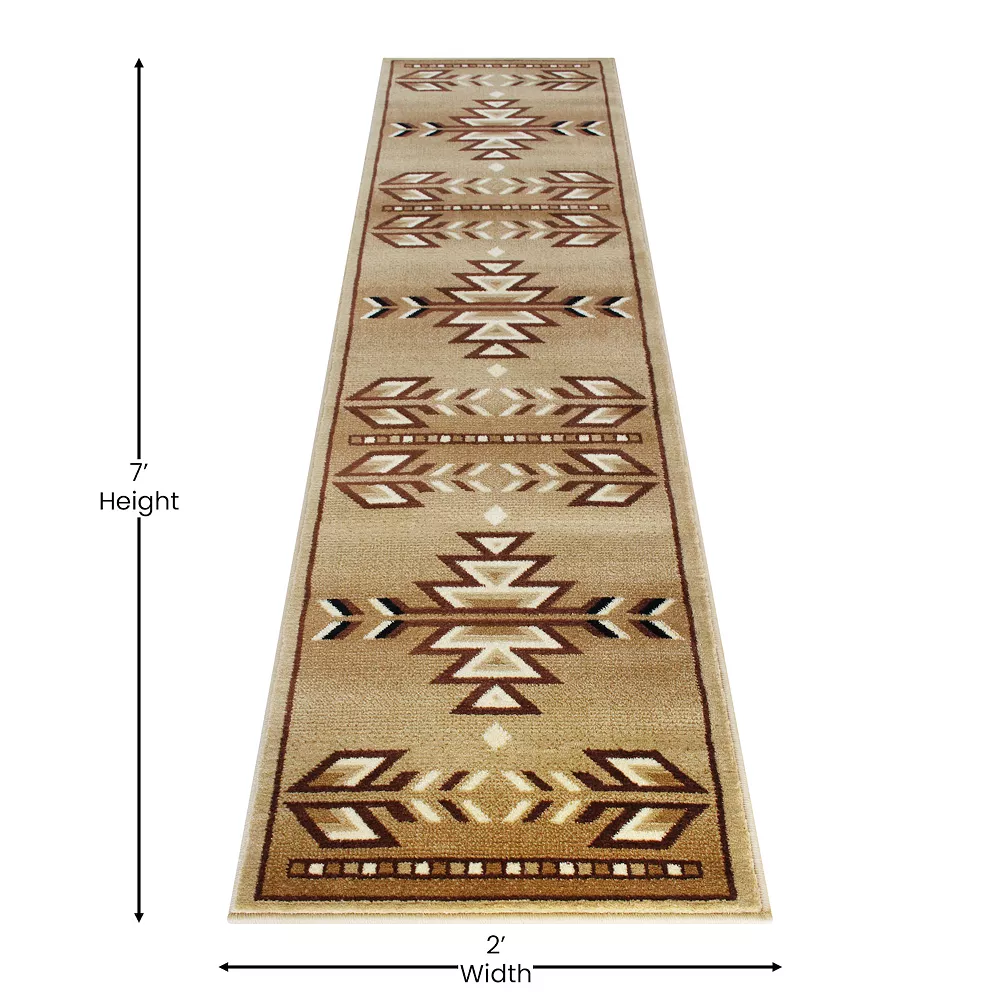 Bring rustic style to your home, cabin or RV with this olefin accent runner. Featuring a Southwestern arrow motif in beige, black and ivory set against a rich, brown background, this rug brings the spirit of the open plains to your living space. Naturally moisture and stain resistant, this rug is ideal for hunting lodges, cabins and RV’s and with the easy clean up, you can spend more time outdoors enjoying what you love. Simply vacuum regularly and spot clean small spills or messes with a diluted mixture of clear, neutral detergent and water and a cloth. If you tracked the outdoors in, steam clean on the lowest moisture setting to refresh your rug and keep it looking newer longer. The natural jute backing is versatile to suit multiple flooring types for your convenience. A perfect blend of style and practicality, this rug was made for your lifestyle.
