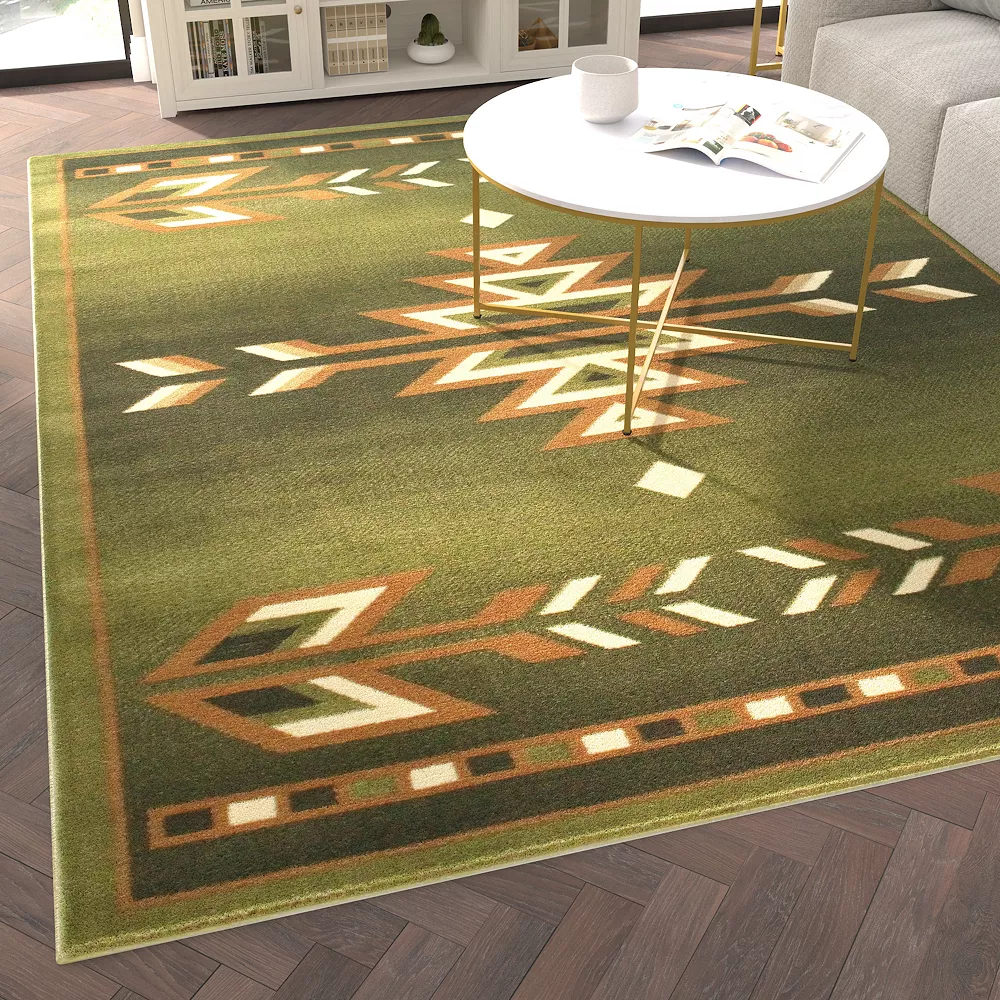 Bring rustic style to your home, cabin or RV with this olefin accent rug. Featuring a Southwestern arrow motif in beige, black and ivory set against a rich, green background, this rug brings the spirit of the open plains to your living space. Naturally moisture and stain resistant, this rug is ideal for hunting lodges, cabins and RV’s and with the easy clean up, you can spend more time outdoors enjoying what you love. Simply vacuum regularly and spot clean small spills or messes with a diluted mixture of clear, neutral detergent and water and a cloth. If you tracked the outdoors in, steam clean on the lowest moisture setting to refresh your rug and keep it looking newer longer. The natural jute backing is versatile to suit multiple flooring types for your convenience. A perfect blend of style and practicality, this rug was made for your lifestyle.