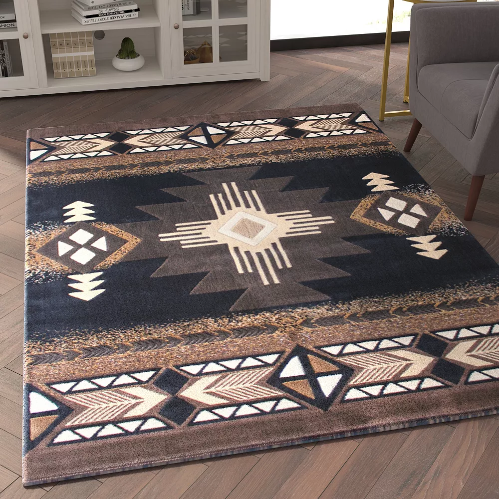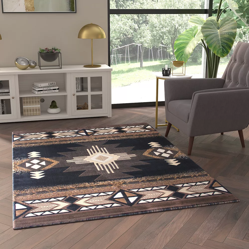 - Southwestern Print 5×7 Accent Rug in Black