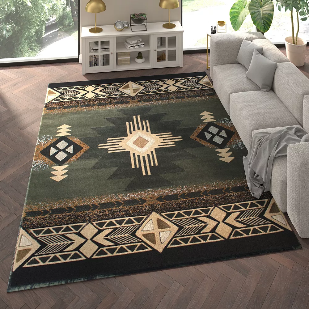 If you’re a fan of Western aesthetics, this is the rug of your dreams. Featuring a vibrant Southwestern geometric pattern against a rich ivory background, this rug will tie all of your favorite design elements together and complete your Western themed room. The olefin facing is moisture and water soluble stain resistant for your peace of mind. Olefin is also non-shedding and colorfast to last for years to come. The high density fibers give the rug an ultra soft feel underfoot and protect from the chill of cold flooring surfaces such as hardwood and tile. To care for this rug, simply vacuum regularly without a brush roller or spot clean with a diluted solution of clear, mild detergent and water and a dry cloth. Spills should be blotted with a dry cloth. In case of heavy soiling, the rug can be steam cleaned, but shouldn’t be exposed to excessive moisture.