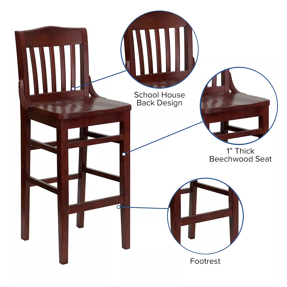 Offer a classic, elegant look when furnishing your establishment with this richly hued mahogany wood bar stool. This wooden stool will make an attractive addition to your restaurant, lounge, bar or other high traffic venues. This tall bar stool is easy to clean, which is an important aspect when it comes to a business. This stool was designed to withstand the daily rigors in the hospitality industry, but will also provide a warm and inviting quality to your home. The durable Beechwood frame is stabilized with numerous support bars, which includes a footrest. The floor glides help protect your floors and ensure smooth gliding. This gracefully styled stool will highlight any space in your home or business.