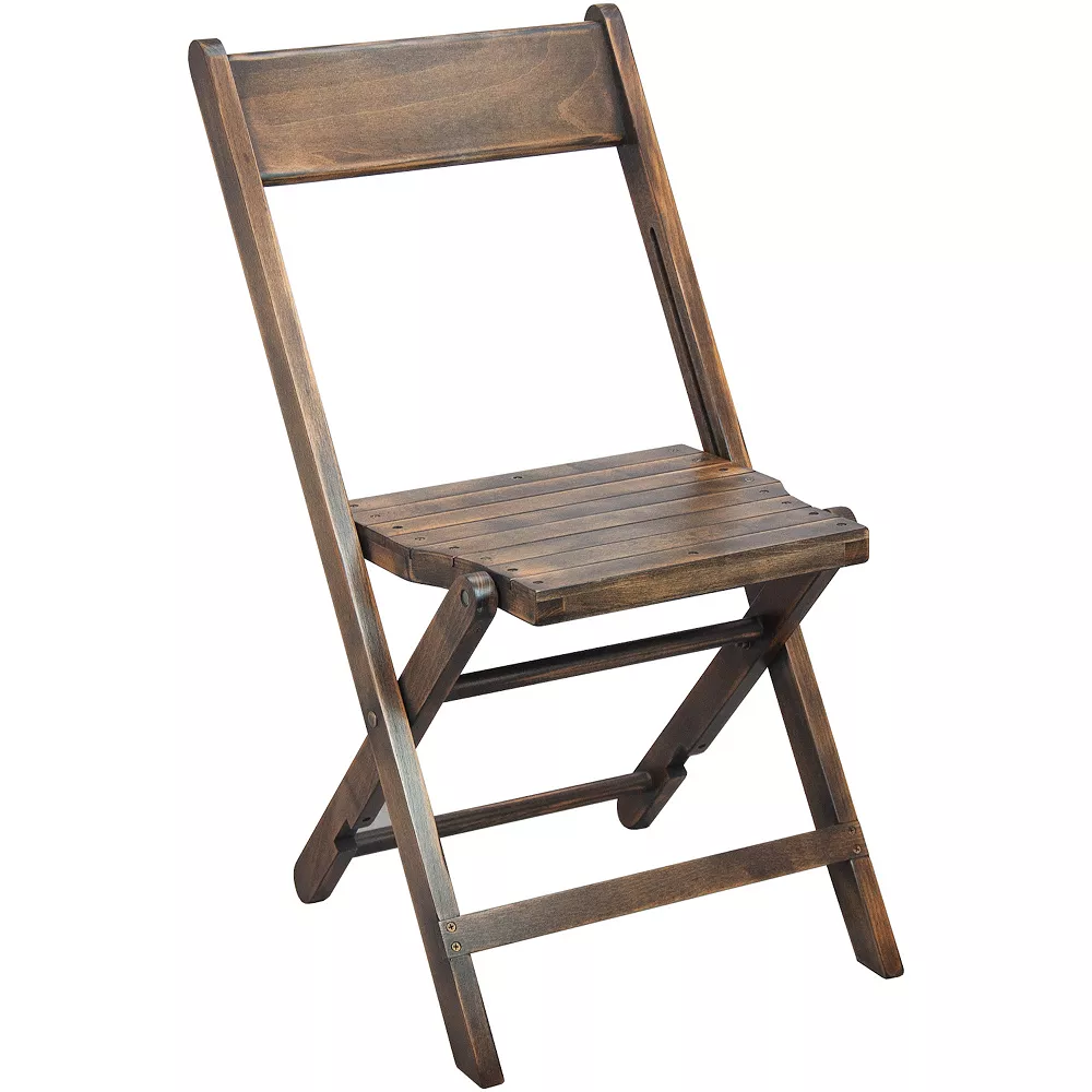 If you’re planning a special event but don’t want to do the same old decor then this set of 2 antique black slatted wood folding wedding chairs is for you. This folding event chair is ideal for professional event planners as well as individuals who want a high end look for their everyday use. This wood folding chair offers an old-world design and industry-leading durability. Each slatted wood folding chair features a true beechwood frame in an antique black finish offering a far more durable construction than competing wood folding chairs. These beechwood folding chairs include a durable, farm style slatted seat that’s both comfortable and long-lasting. This folding wood chair has much more than beauty going for it. Quality construction allows this solid wood chair to hold up to 500 lbs weight capacity for a worry free seating experience. Arriving fully assembled, this ready to use event chair can be put in place right out of the box saving you precious set up time. When you need to decorate a venue, or do floor maintenance at your own event center, this slatted seat chair folds up for easy mobility and storage. These slatted wood folding chairs offer a great solution and versatile option for most wedding venues, banquet halls and event facilities.