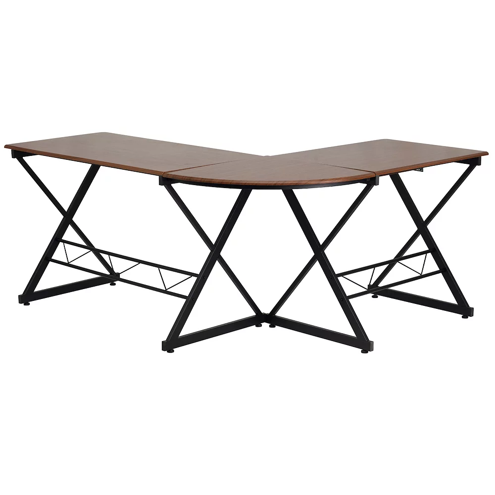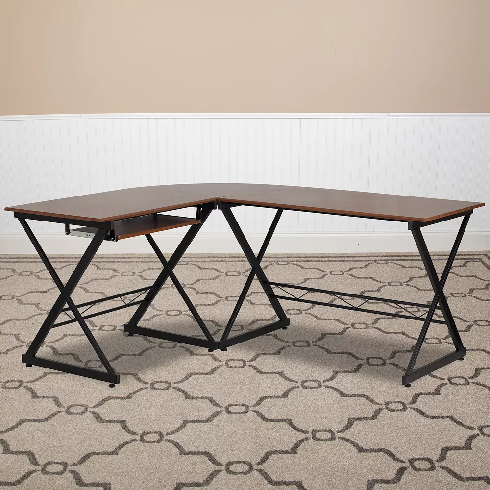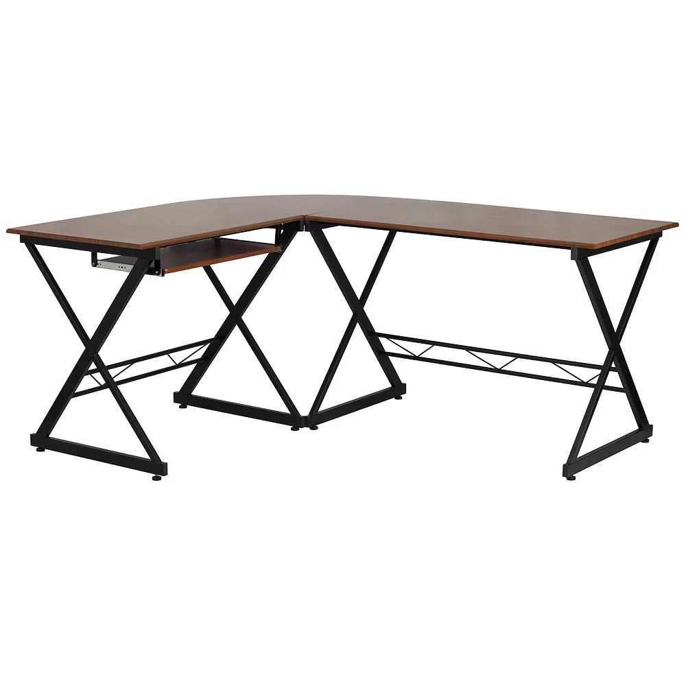 If space is not an issue for you, the work area gained with an l-shaped computer desk is priceless. Accommodate your monitor, laptop, books, office supplies and other necessities while maintaining ample space for writing. The updated style of this fresh looking teakwood laminate computer desk with a pull-out keyboard tray is just the ticket for your workspace. The keyboard tray can double as a place to store your writing materials and small devices while you’re working on your laptop. Place on either corner of a room or come off the wall to add an open concept feel, where you can access the desk from either side. Take your office from boring to boom with this impressive workstation.