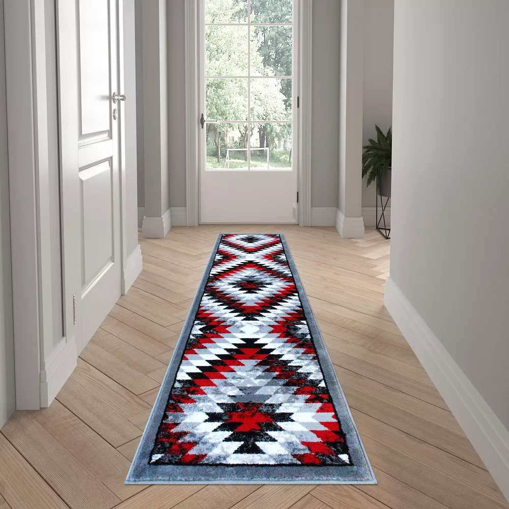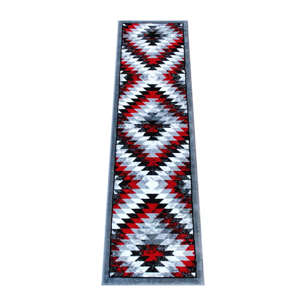 Give your home a style upgrade with this plush accent rug. Featuring a traditional Southwestern diamond motif in a distressed modern palette of red, beige, brown and black, it’s the best of both worlds. The olefin facing is fade and stain resistant to stay looking beautiful longer. Whether you’re decorating in farmhouse, cabin or modern style, this rug makes a perfect accent piece in any room. Available in multiple sizes, you can even carry this design throughout your home for a cohesive feel. This is the perfect rug to relax on for family game or movie nights with it’s ultra soft texture and if you live in a home with children and pets, you’ll love the low maintenance upkeep. Simply vacuum regularly and spot clean when needed with a diluted mixture of clear, neutral detergent and water. For heavier messes, steam clean on the lowest moisture setting for best results.