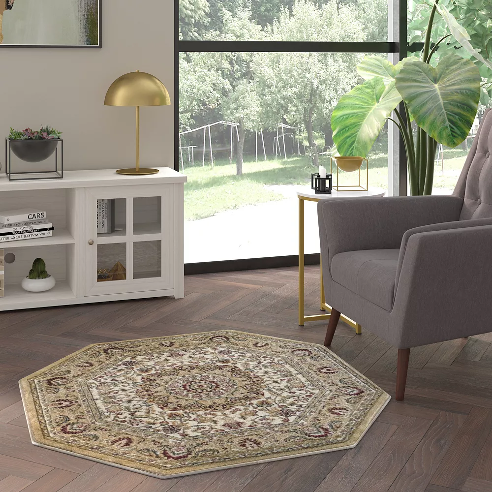 - Classic Persian Style 4’x4′ Octagon Accent Rug