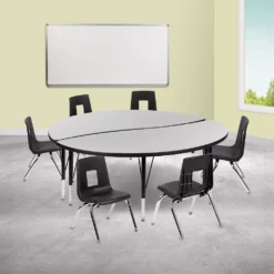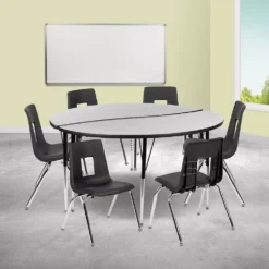Emma And Oliver 60″ Circle Wave Activity Table Set With 16″ Student Stack Chairs, Grey/Black