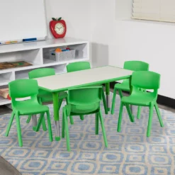Emma And Oliver 6-Foot Plastic Folding Training Table Set With 2 Trapezoidal Back Stack Chairs