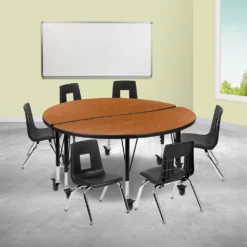 Emma And Oliver Mobile 60″ Circle Wave Activity Table Set-12″ Student Stack Chairs, Oak/Black