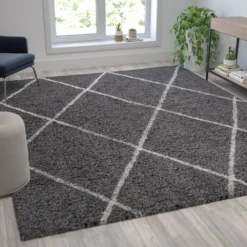 Emma And Oliver 8′ X 10′ Dark Gray And Ivory Geometric Style Modern Bohemian Design Area Rug