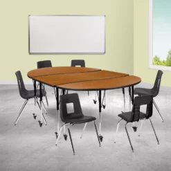 Emma And Oliver Mobile 86″ Oval Wave Activity Table Set-16″ Student Stack Chairs, Oak/Black