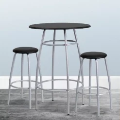 Emma And Oliver Commercial 30″ Round Black Metal Bar Table Set-2 Square Seat Backless Stools