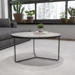Emma And Oliver 31.5″ Round Indoor Coffee Table In Faux Concrete Finish – Living Room Table