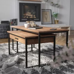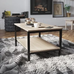 Emma And Oliver All-Weather Black Commercial Grade Indoor/Outdoor Metal 2 Tier Coffee Table