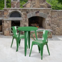 Emma And Oliver Commercial Grade 24″ Round Green Metal Table Set-2 Vertical Slat Back Chairs