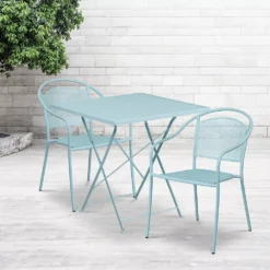 Emma And Oliver Commercial Grade 24″ Round Blue Metal Indoor-Outdoor Table Set With 2 Arm Chairs