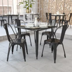 Emma And Oliver Commercial Grade 31.75″ Square Black-Antique Gold Metal Indoor-Outdoor Table