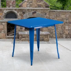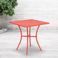 Emma And Oliver Commercial Grade 35.5″ SQ Black Indoor-Outdoor Steel Patio Table-Umbrella Hole