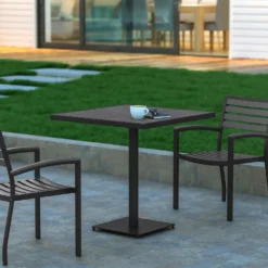 Emma And Oliver Square All-Weather Faux Teak Patio Dining Table With Steel Frame – Seats 4
