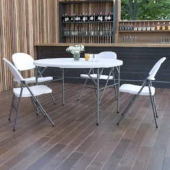 Emma And Oliver 4-Foot Round Granite White Plastic Folding Table – Banquet / Event Folding Table