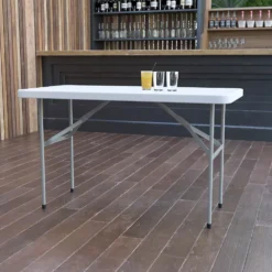 Emma And Oliver 4-Foot Granite White Plastic Folding Table – Banquet / Event Folding Table