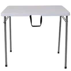 Emma And Oliver 2.79-Foot Square Bi-Fold Granite White Plastic Folding Table W/ Carrying Handle