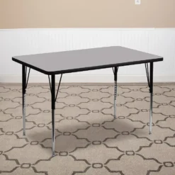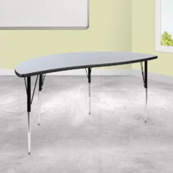 Emma And Oliver 35″Wx65″L Half-Moon Natural Plastic Adjustable Activity Table-School Table For 8